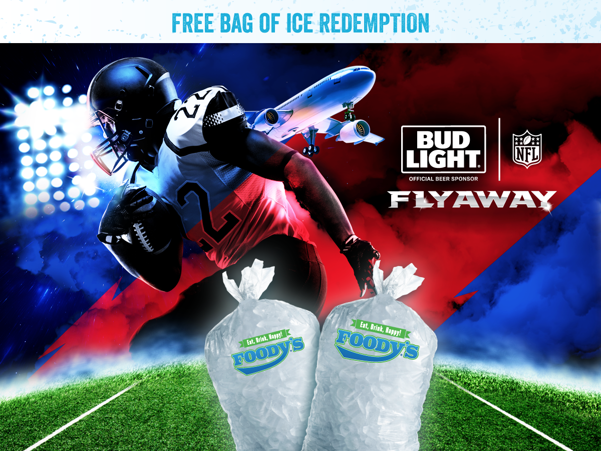 Check your Bud Light Super Bowl 51 Flyaway entry form to see if you’ve won a Free Bag of Ice! Redeem your prize at your favorite Foody’s location.