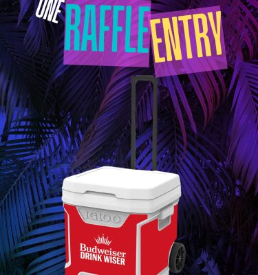 RAFFLE ENTRY: BUDWEISER IGLOO 60QT ROLLING COOLER