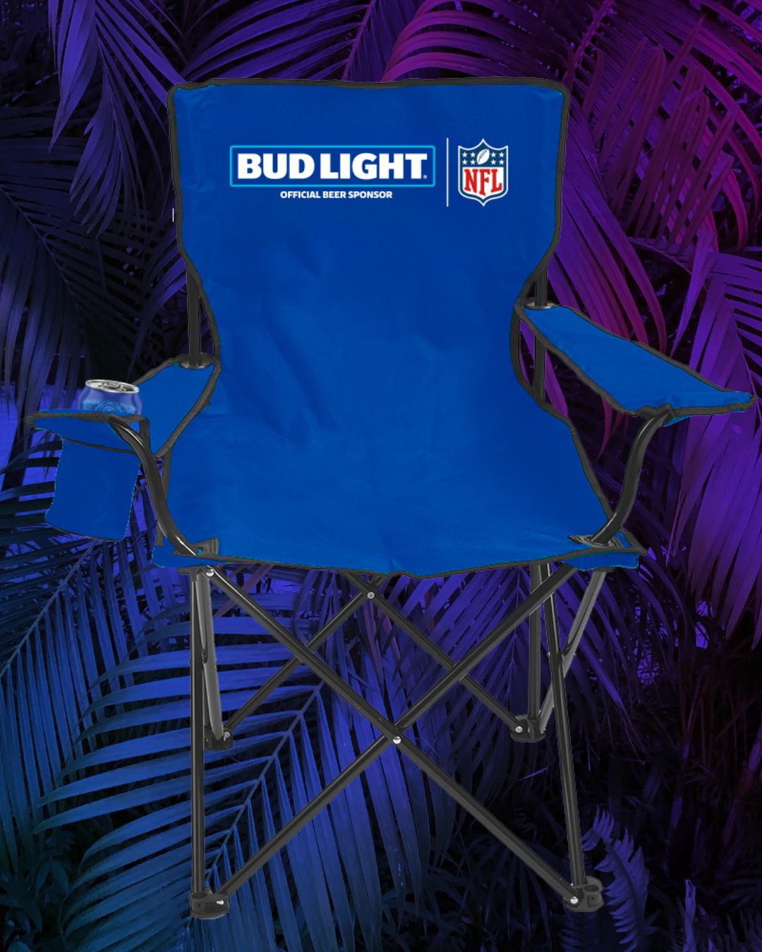 Kick back like a true fan with the Bud Light x NFL Folding Beach Chair — the ultimate game-day essential for sun, sand, and sidelines. Lightweight, foldable, and easy to carry, it’s built for comfort wherever you rep your team. Featuring bold Bud Light and NFL branding, this chair lets everyone know you’re all about good times, great friends, and cold Bud Lights. Whether you’re tailgating or relaxing on the beach, this chair’s got your seat covered.