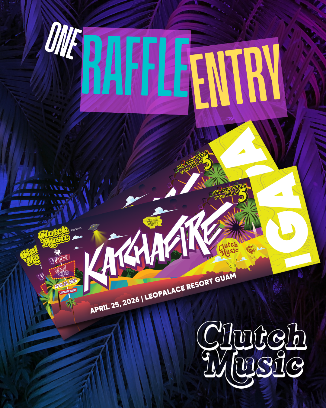 SKU: RAFFLE ENTRY: CLUTCH MUSIC: ISLAND FEELS IN THE HILLS 5 - GEN. ADMIN TICKETS FOR 2! Category: