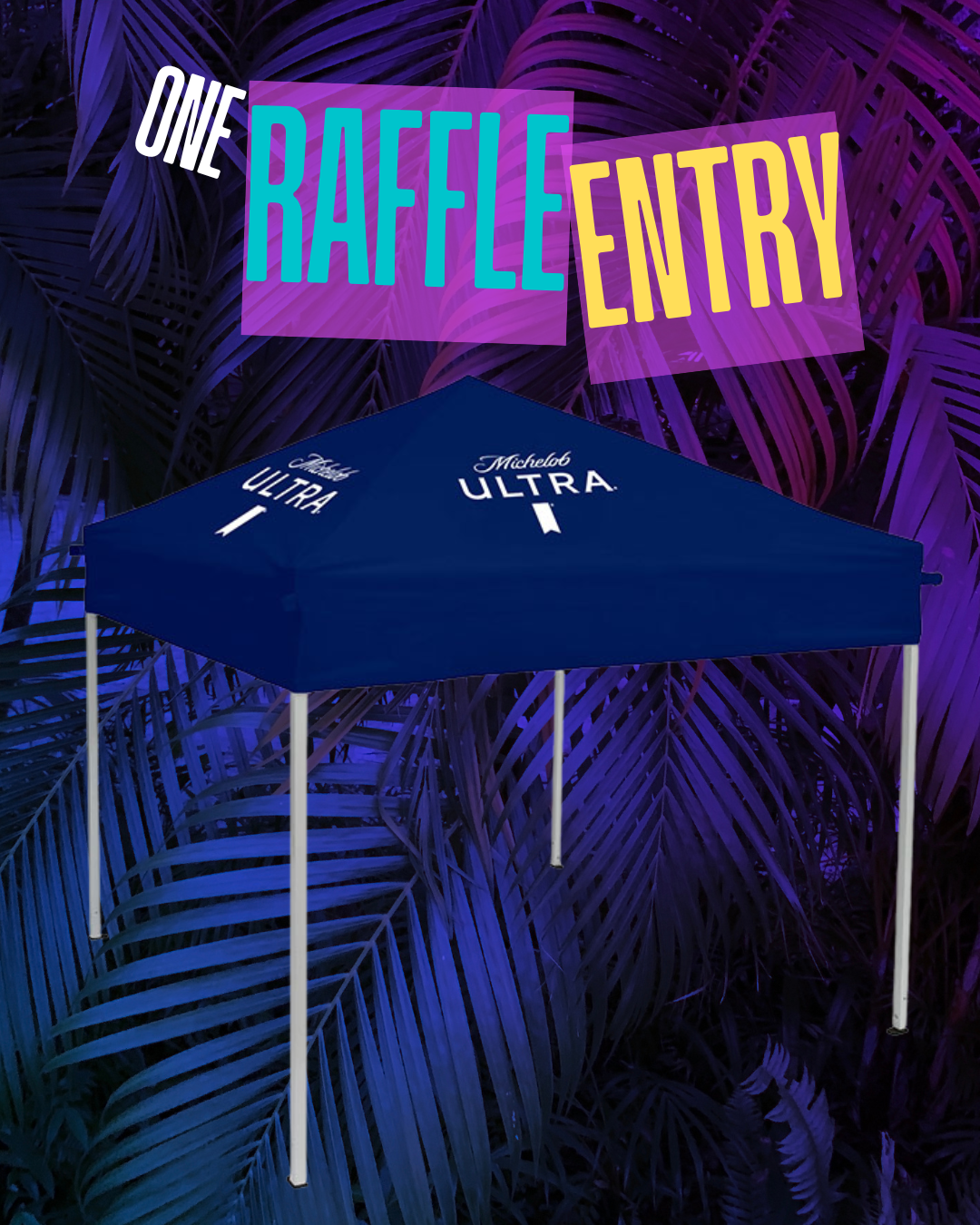 ONE RAFFLE ENTRY ONLY. Winner will be announced 4/30. Stay cool and covered in style with the Michelob Ultra 10×10 Pop-Up Canopy. Designed for quick and easy setup, this durable canopy provides ample shade for outdoor events, beach days, and tailgates. Built with a sturdy frame and weather-resistant top, it delivers reliable protection from the sun while showcasing a clean, modern look. Perfect for elevating any outdoor setup with comfort and signature Michelob Ultra style.