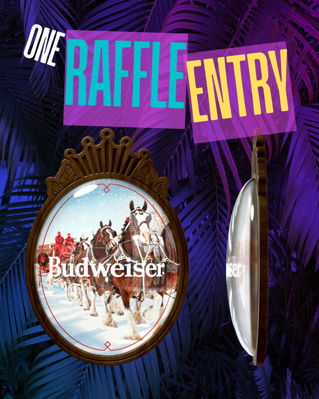 ONE RAFFLE ENTRY ONLY. This Budweiser Clydesdale Lightbox showcases the iconic Clydesdales in a bright, eye-catching display perfect for home bars or man caves. With vivid lighting and premium artwork, it adds classic Budweiser charm to any space.